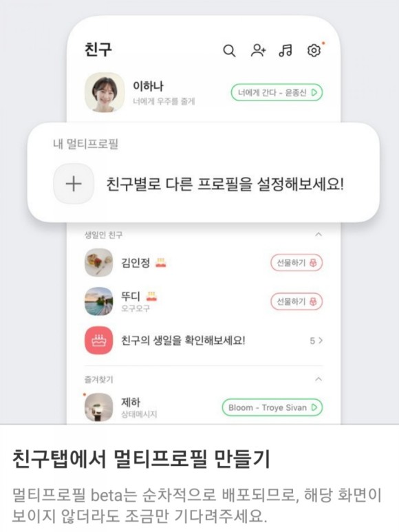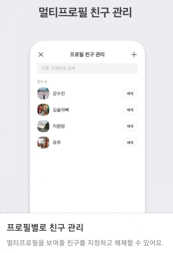 이 멀티 프로필 기능은 기본적으로 '친구' 관계에서만 이용이 가능하며