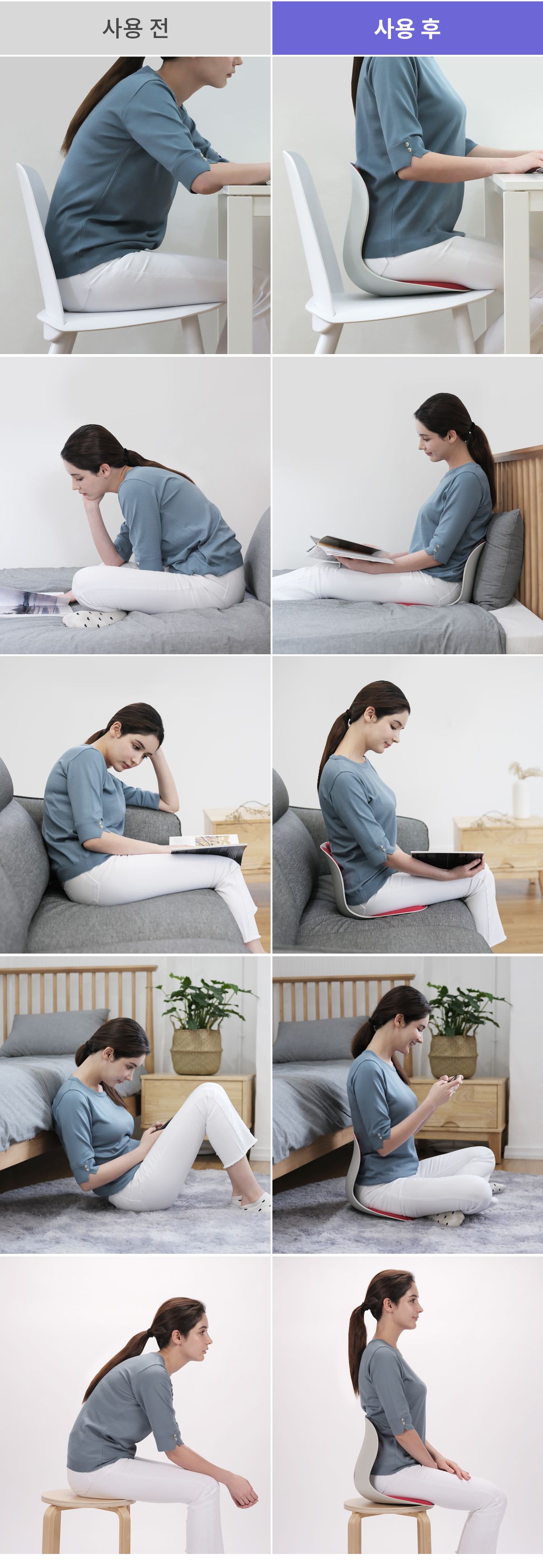 그렇다면 커블 의자 손연재 의자를 사용하면 자세가 어떻게 달라질까요?